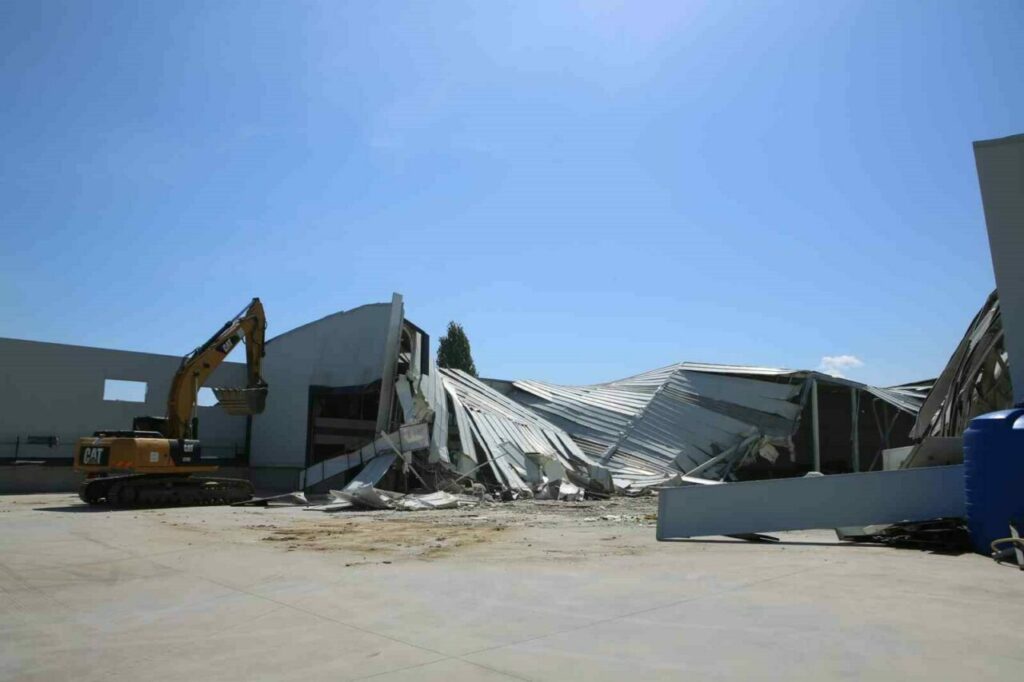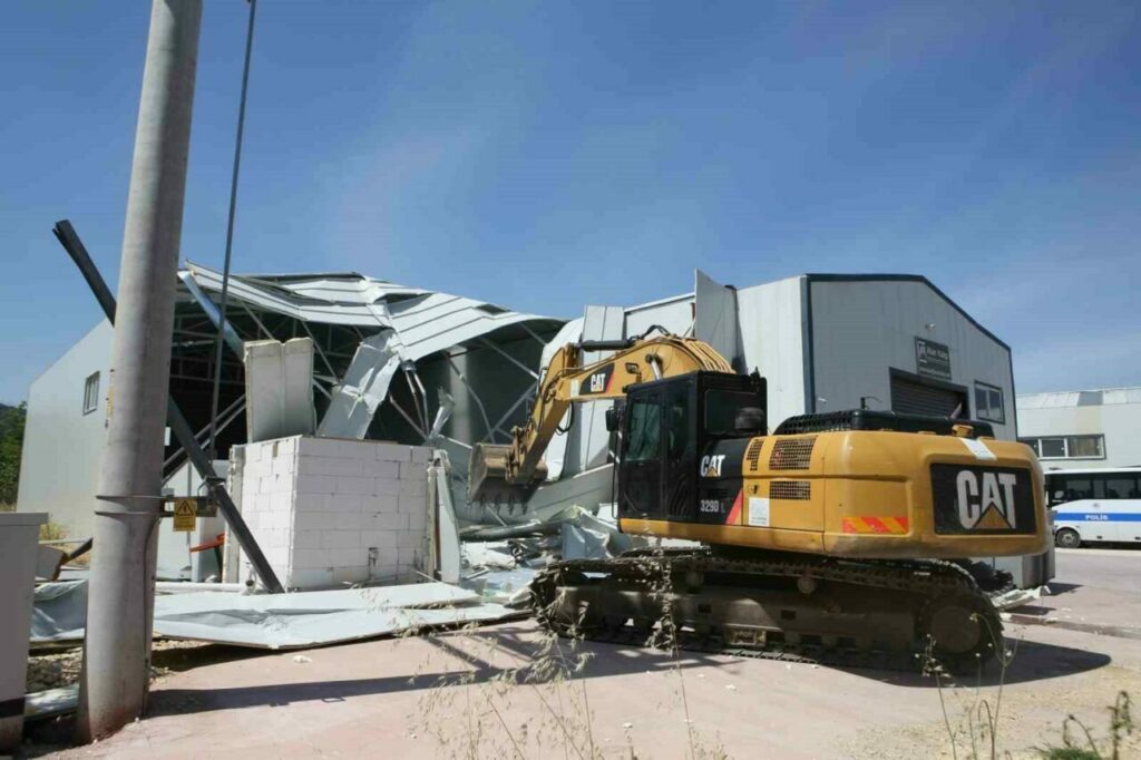 Bursa’nın Nilüfer ilçesi Yaylacık Mahallesi’nde tarım arazisi üzerine inşa edilen 1 depo belediye ekipleri tarafından yerle bir edildi. Nilüfer Belediyesi ekipleri tarafından tespit edilerek, yasal prosedürleri tamamlanan ruhsatsız yapılar bir bir yıkılıyor. Çevik kuvvet ve zabıta ekiplerinin güvenlik önlemleri çerçevesinde, Yaylacık Mahallesi’nde bin 500 metrekarelik bir depo tamamen yıkılırken, 280 metrekarelik depo da kullanılamaz hale getirildi.
