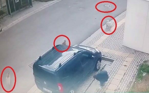 Olay, Bursa’nın Orhangazi ilçesi Arapzade Mahallesinde meydana geldi. Okuldan evine dönmek isteyen ilkokul öğrencisi, kaldırımdan yürüdüğü esnada etraftaki başıboş köpeklerin saldırısına uğradı. Ayağı takılan öğrenci, kaldırımla park halindeki kamyonetin arasına düştü. Çevredeki başıboş 4 adet köpek, çocuğa saldırdı. Çocuğun kendisini toparlaması ve bağrışıyla korkan köpekler dağıldı. Yaşanan korku dolu anlar ise güvenlik kamerasına yansıdı.
