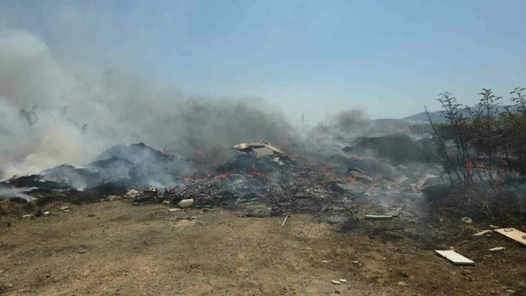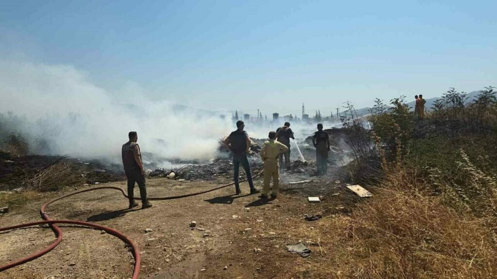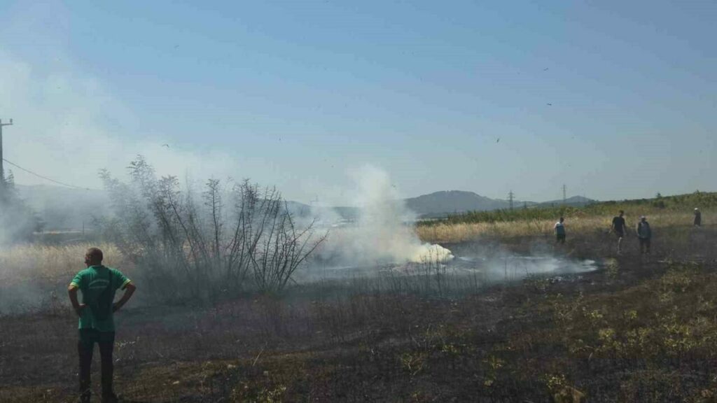 Bursa’nın Orhangazi ilçesinde molozların döküldüğü alanda başlayıp çalılık alana sıçrayan yangın büyümeden kontrol altına alındı.