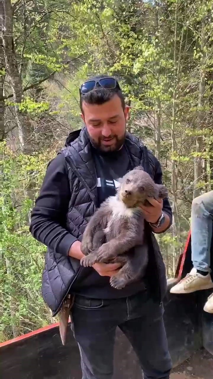 Mahalle sakinleri sevimli ayıyı ormana salmadan önce videosunu çekip sosyal medyada paylaştı.
