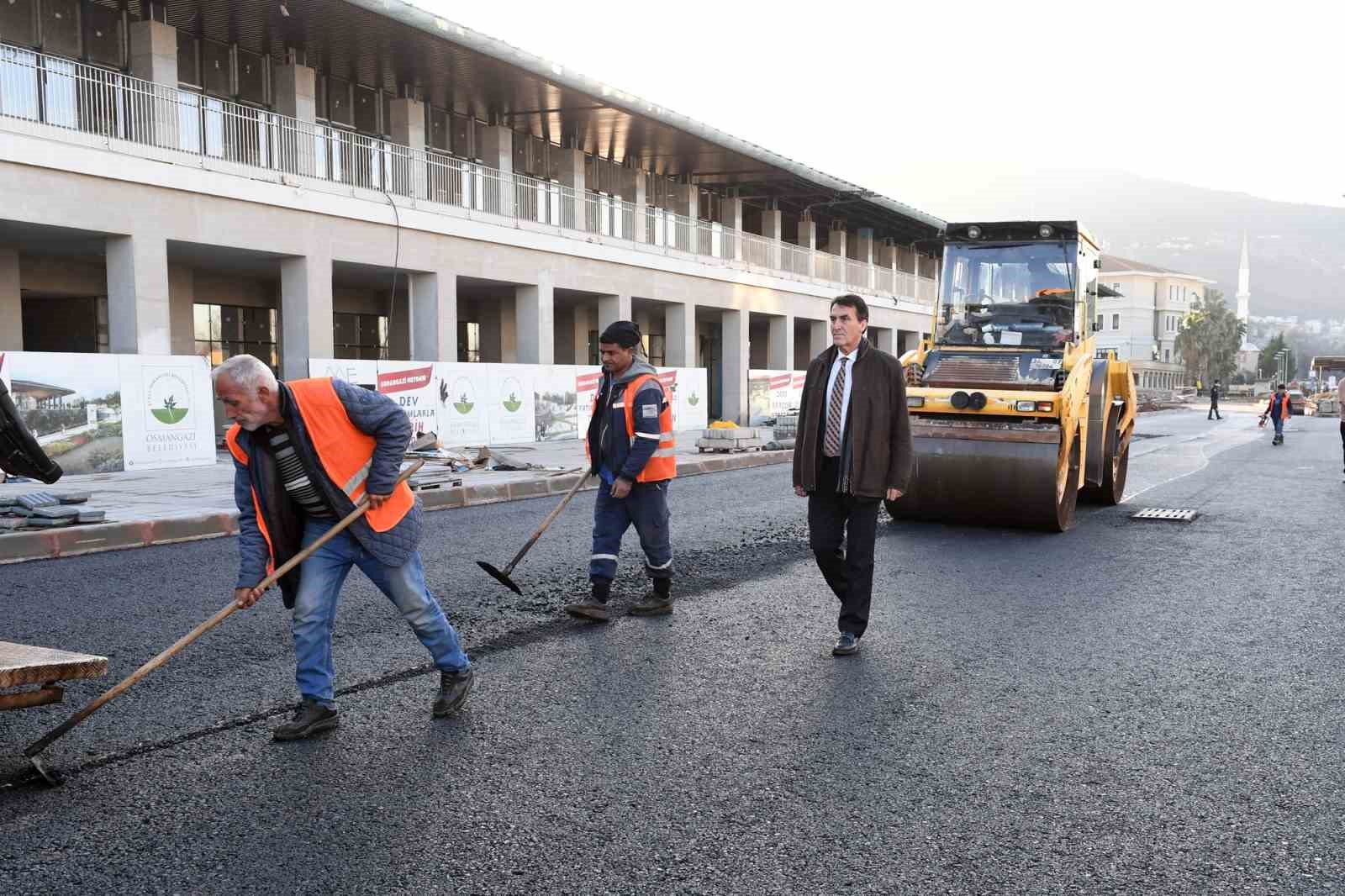 Osmangazi Belediyesi tarafından yapımına devam edilen Osmangazi Meydanı’nda açılış için son hazırlıklar yapılıyor. Dev meydanın Ulubatlı Hasan Bulvarı tarafındaki bölümünde asfalt çalışmaları tamamlanarak alt meydan ortaya çıkmış oldu.