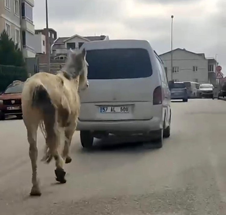 Olay, merkez Osmangazi ilçesi Yunuseli Mahallesi’nde meydana geldi. Bir araç sürücüsü, atını götürmek için akıl almaz bir yönteme başvurdu. Atı ip ile araç arkasına bağlayan kişi, direksiyon başına geçip gaza bastı. Dakikalarca zavallı hayvanı koşturan sürücü, trafiği de tehlikeye düşürürken, durumu gören vatandaşlar ise tepki gösterdi. O anlar kameraya anbean yansıdı.