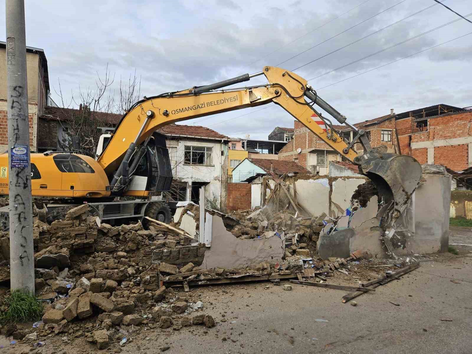 Osmangazi Belediyesi, mahalle sakinlerinin emniyeti ve sağlığı açısından risk oluşturan metruk yapıları yıkarak, çarpık yapılaşmayı ve görüntü kirliliğini ortadan kaldırıyor.