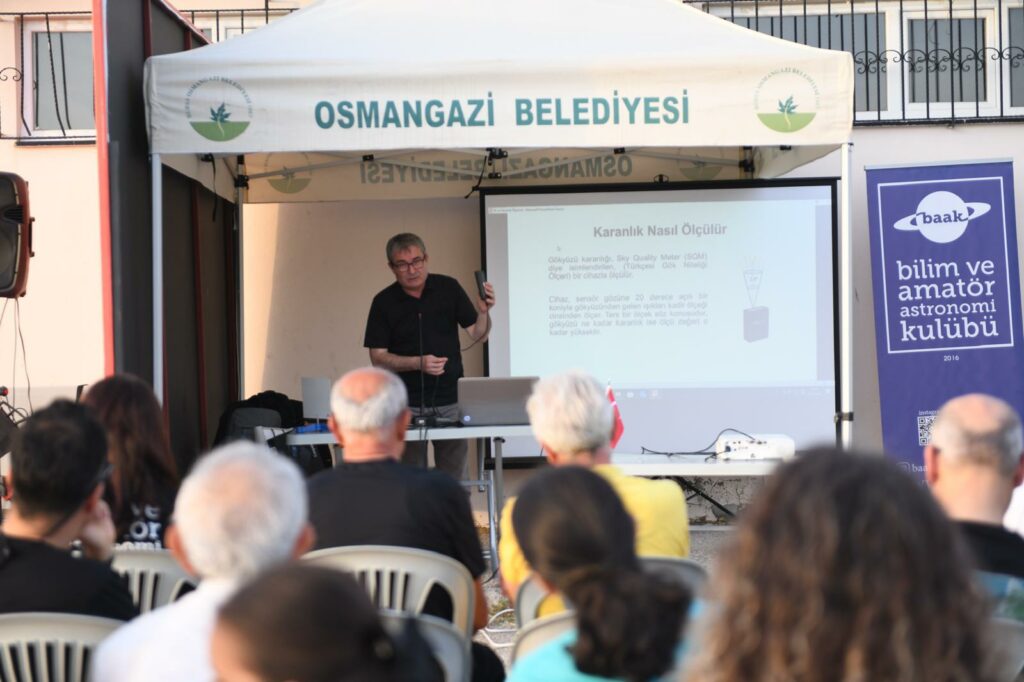 Her ay farklı temalarda buluşmalar gerçekleştirdiklerini ifade eden Bilim ve Amatör Astronomi Kulübü Başkanı Cem Özkan ‘Osmangazi Belediyesi ile kulübümüz son bir yıldır her ay belli bilimsel temalarla, Osmangazi kentinin çeşitli bölgelerinde halk bilim buluşmaları ve köylerde köy bilim buluşmaları etkinlikleri gerçekleştiriyor. Burada amacımız insanlara köydeki insanları popüler bilim faaliyetleriyle bilime yaklaştırmak. Kentteki insanları kırsal alana getirerek ortak bir etkinlikte buluşturmayı hedefliyoruz. Her ay farklı temalarda buluşmalar gerçekleştiriyoruz. Bu ay ki etkinliğimizin temasını, ‘Dünya Işık Günü’ olarak belirledik. Etkinlikte ışığın insan hayatındaki önemini vurguladık, bilim ve teknolojide geliştiği yeri anlattık. Burada ışığı her boyutuyla köy halkına anlattık. Işık hayatımızı çok zenginleştiriyor ama ışığın hoyratça ve bilinçsizce kullanımı şehir hayatındaki insanları bir anlamdan da ışık kirliliğe maruz bıraktığını göstererek anlattık. Etkinlikte ışık kirliliği ölçümleri yaparak bunu buradaki vatandaşlara gösterdik. Burada teleskoplarımızı kurup gezegen gözlemleri yaptık’ dedi.