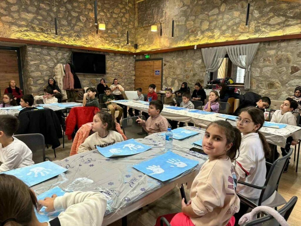 “Ebeveynlerimiz ile birlikte günlük yaşamın temposundan uzaklaştığımız, beraber vakit geçirdiğimiz, beraber aile bağlarını güçlendirdiğimiz, oyunu sanat ile birleştirdiğimiz bir etkinlik tasarladık. Hep beraber, sünger ile birlikte baskı tekniğiyle resim yapıyoruz. Ardından kirlenmek güzeldir diyerek, parmaklarımızı kirletip kardan adam ailesinin bir hikayesini oluşturuyoruz. Hem çocuklarımızın, hem de ailelerimizin el izleriyle beraber onları birer kardan adama dönüştüreceğiz. Kışın en birleştirici ve en sade ögesi kardan adam olduğu için buradan yola çıktık. Aynı zamanda yaşadığımız şehirdeki dağda hangi hayvanlar yaşıyor ve hangi bitkiler yetişiyor, birazcık da bunlara değinerek, onlara buraları tanıtmak istiyoruz.” Çocuklar ise atölye boyunca doyasıya eğlendiklerini belirterek desteklerinden ötürü Osmangazi Belediye Başkanı Erkan Aydın’a teşekkür etti.