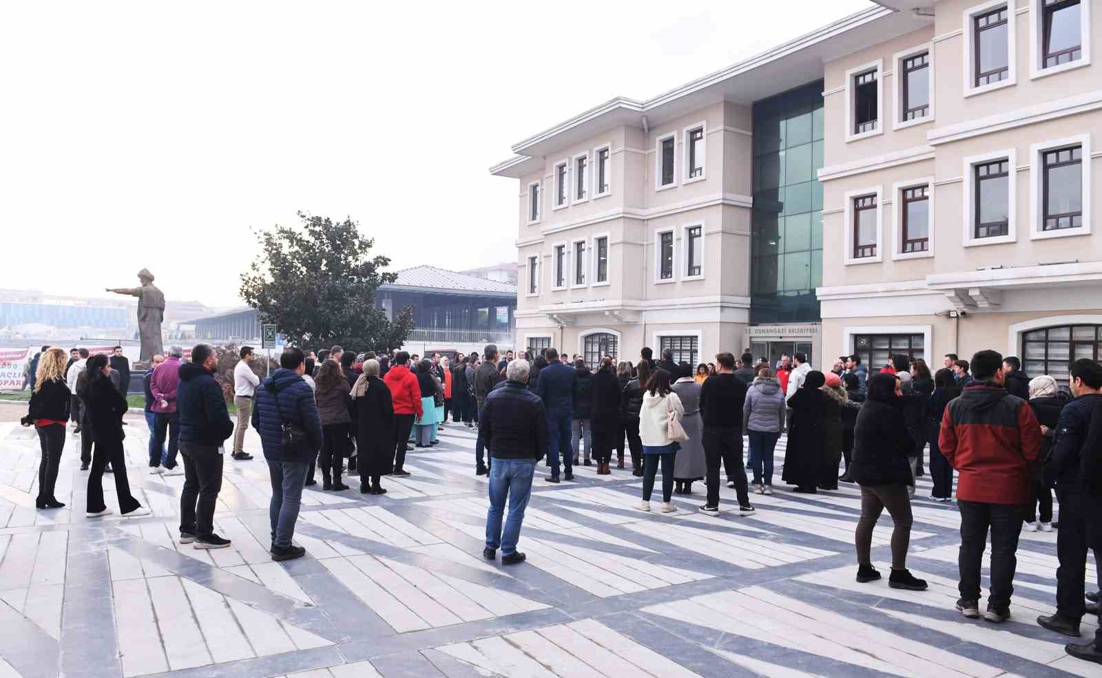 Osmangazi Belediyesi, personelini deprem ve yangınlara karşı daha duyarlı ve bilinçli olması için yılda 3 kez deprem ve yangın tatbikatı gerçekleştiriyor. Belediyeye ait hizmet binalarında yapılan tatbikatlarda ilk çalan sirenle birlikte deprem tatbikatı yapıldığı anonsu geçilerek personelinin en yakın masanın altına çök kapan tekniği uygulaması istendi. Bu esnadaOsmangazi Belediyesi Afet İşleri Müdürlüğü ekipleri, personelin hareketleri doğru yapıp yapmadığını gözlemledi.