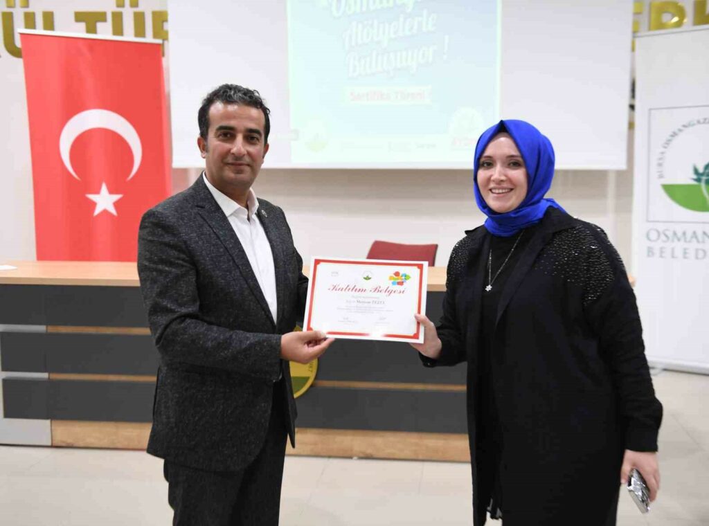 Eğitimleri başarıyla tamamlayan kursiyerler için Demirtaş Kültür Merkezi’nde sertifika töreni düzenlendi. Osmangazi Belediye Başkan Yardımcı Mutlu Esendemir ve Osmangazi Belediye Meclis Üyesi Sinan Nergiz, kursiyerlere sertifikalarını takdim ederek, başarılar diledi.