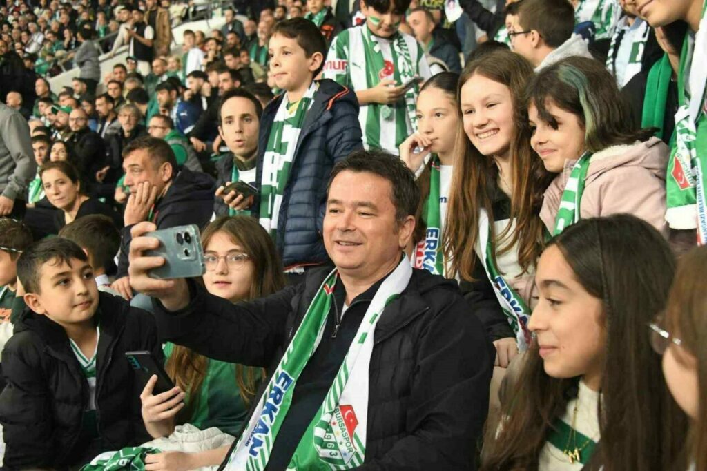 Osmangazi İlçesi’nden 100 çocuğu Bursaspor maçını izlemek için stada götürdüklerini ifade eden Osmangazi Belediye Başkanı Erkan Aydın, “Başaran, Küplüpınar, Seçköy ve dağ yöresinden çocuklarımızla birlikte Bursaspor, Menemenspor, maçını izlemek için tribündeki yerimizi aldık. Bursaspor’a başarılar diliyorum. 2 haftadır bir şanssızlık yaşıyor. Memenspor’u yenerek tekrar yükselişe geçti. Aldığı galibiyet için Bursaspor’u tebrik ediyorum” dedi.