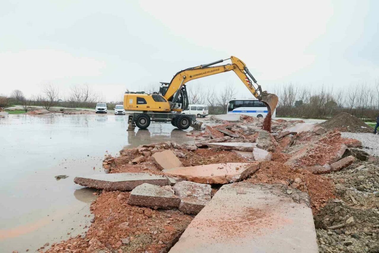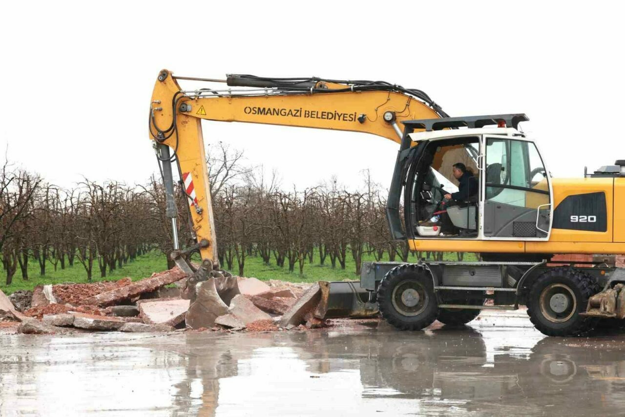 Osmangazi Belediyesi, tarım arazilerini korumak ve kaçak yapılaşmanın önüne geçmek amacıyla çalışmalarını aralıksız sürdürüyor. Birinci sınıf tarım arazisine kaçak olarak yapılan depo, inşaat aşamasındayken tespit edilerek yıkıldı.