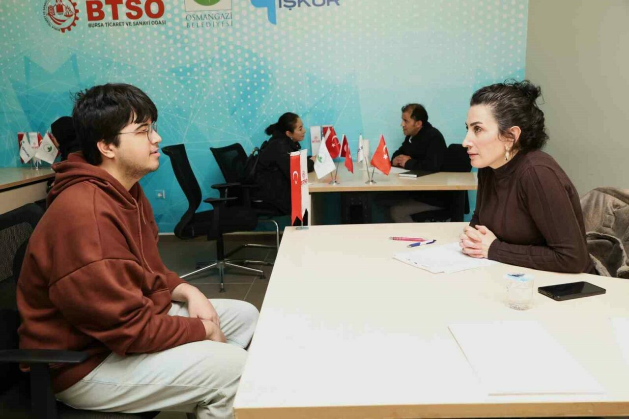 Osmangazi Belediyesi’nin, Bursa Ticaret ve Sanayi Odası (BTSO) iş birliğiyle yıl boyunca sürdürdüğü çalışmalar kapsamında düzenlenen etkinlikte, personel arayışındaki firmalar ile iş arayanlar aynı çatı altında buluştu. Bursa Ticaret ve Sanayi Odası’nın Altıparmak’taki hizmet binasında gerçekleşen organizasyonda katılımcılar, firmalarla birebir görüşme fırsatı yakalayarak iş imkanlarını yerinde değerlendirdi. Hem işverenler hem de vatandaşlar açısından oldukça verimli geçen buluşma, kentte istihdamın artırılmasına yönelik önemli bir köprü olmayı sürdürdü.