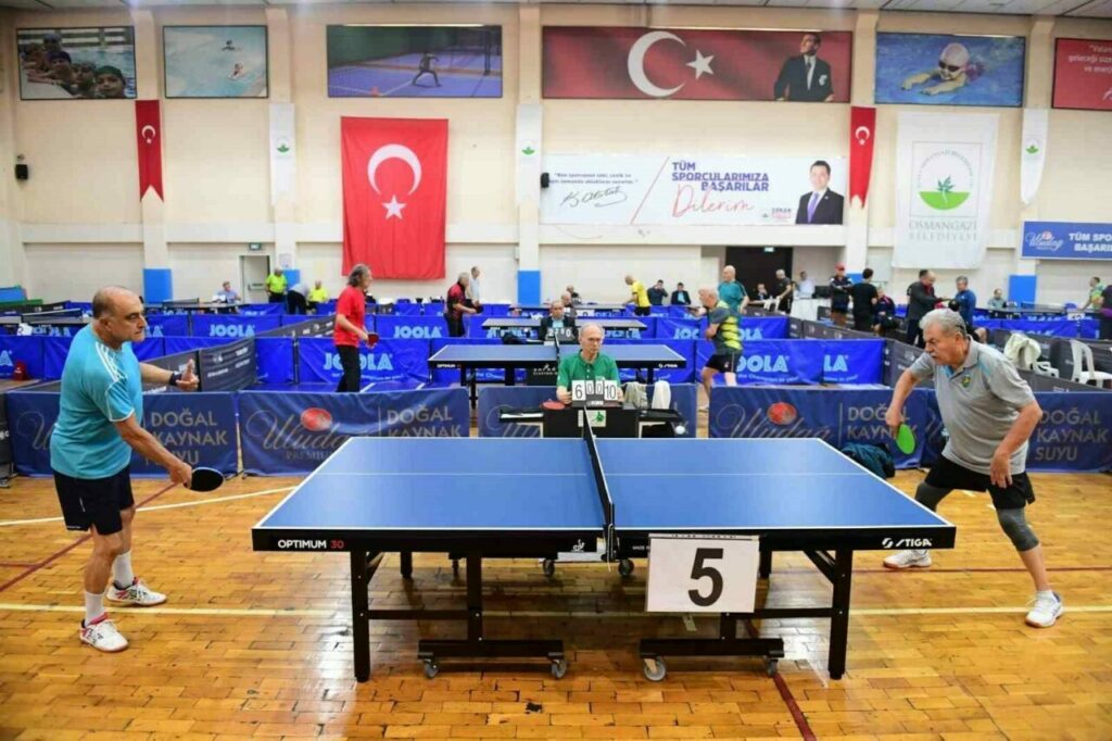 Osmangazi Belediyesi, yıllarını masa tenisine adamış veteran sporcuları dostluk ve rekabetin bir arada yaşandığı 12’nci Ulusal Bursa Veteran Masa Tenisi Turnuvası’nda ağırladı. Dikkaldırım Spor Salonu’nda düzenlenen turnuvaya, Türkiye’nin 36 ilinden gelen oyuncuların yanı sıra Ukrayna, Bulgaristan, Fransa, Suriye, Irak, Kıbrıs ve Rusya’dan oyuncular da katılım sağladı. Tekler ve çiftler kategorilerinde mücadele eden sporcular, hem fiziksel dayanıklılıkları hem de teknik becerileri ile masa tenisine olan tutkularını bir kez daha kanıtladı. 70 yaşın üzerinde sporcuların istekli ve azimli görüntüleri dikkat çekerken, sporcular da turnuvada yer almaktan ötürü duydukları mutluluğu paylaştı.