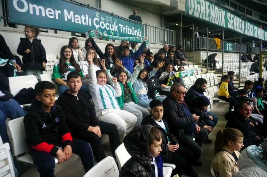 Osmangazi ilçesinin Ahmetbey ve Karabalçık mahallelerinden 100 çocuk, mahallelerinden alınarak Atatürk Spor Kompleksi Matlı Stadyumu Çocuk Tribünü’ne Bursaspor maçı izlemek için götürüldü. Bursaspor’un iç saha müsabakasında Fethiyespor ile karşılaştığı mücadeleyi tribünden izleyen Osmangazili çocuklar, 90 dakika boyunca takımlarına tezahüratlarıyla destek oldu. İlk kez bir Bursaspor maçını tribünden izleme fırsatı bulan çocuklar, hem büyük heyecan hem de tarifsiz bir mutluluk yaşadı. Yeşil beyazlılar sahadan 3-0’lık üstünlükle ayrılırken, çocuklar da galibiyeti tribünde doyasıya kutladı.