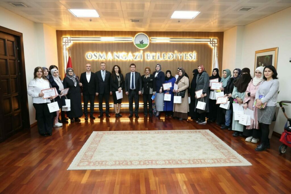 Osmangazi Belediyesi Meslek Edindirme Kursları (OSMEK) bünyesindeki okuma yazma kursuna katılan 26 kursiyer, mezuniyet heyecanı yaşadı. Sertifikalarını Başkan Erkan Aydın’ın elinden alan kadınların heyecanı ve mutluluğu ise görülmeye değerdi.