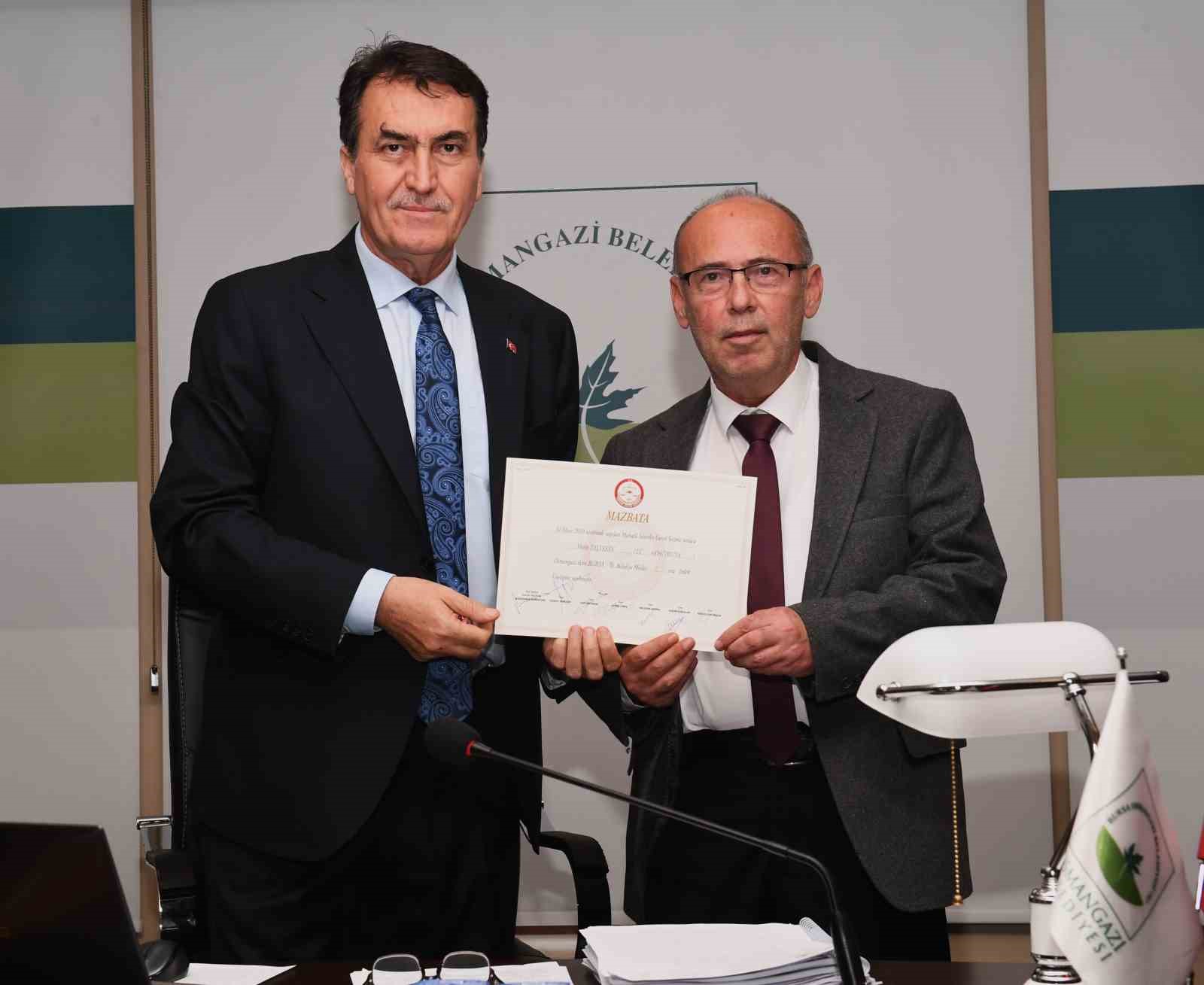 Başkan Dündar, meclis toplantısında AK Parti Osmangazi İlçe Başkanı Adnan Kurtuluş’un istifasıyla boşalan meclis üyeliğine seçilen Metin Taştekin’e mazbatasını verdi.