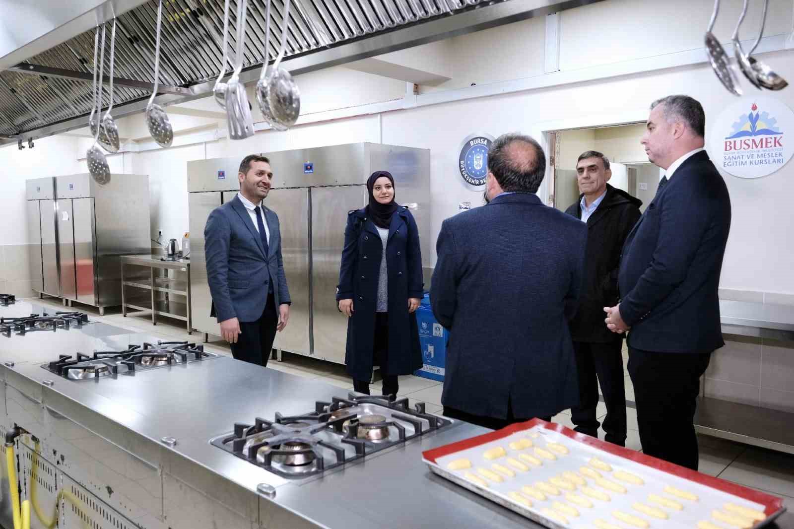 Halen 13 ilçedeki 25 farklı mekânda 541 farklı branşta yılda yaklaşık 20 bin kursiyerin eğitim aldığı dev bir kuruma dönüşen BUSMEK, istihdam garantili kurslarla da bireyleri iş yaşamına kazandırıyor. Büyükşehir Belediyesi, Güney Marmara Turistik Otelciler ve İşletmeciler Birliği Derneği, BUSMEK ve BİKO iş birliği ile iş garantili ön büro personeli, servis personeli ve kat hizmetleri personeli kursları Yeni Karaman Mesleki Eğitim Merkezi’nde başladı. GÜMTOB Başkanı Buğra Artıç, yönetim kurulu üyeleriyle birlikte BUSMEK Yeni Karaman Mesleki Eğitim Merkezi’ni ziyaret ederek, ön büro personeli branşında dersleri başlayan öğrencilerle bir araya geldi. Öğrencilere başarılar dileyen heyet, ayrıca merkezdeki yenilenen mutfakları da yerinde inceledi. Ziyarete gelen heyete Hayat Boyu Öğrenme Şube Müdürü Sinem Şen ve BUSMEK Koordinatörü Aslan Şahin de eşlik etti.