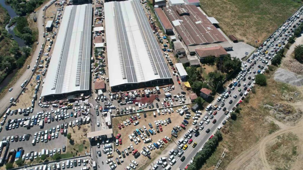 Bursa’da kurban kesmek için kesimhanelere akın eden vatandaşlar kilometrece araç kuyruğu oluşturdu. Binlerce aracın park ettiği hayvan pazarının havadan görüntüleri oto pazarlarını aratmazken, yoğunluk sebebiyle kesim işleri kesimhanelerin dışına taştı.