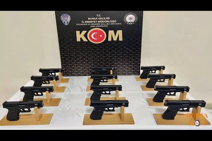 Bursa İl Emniyet Müdürlüğü KOM Şube Müdürlüğü ekiplerince ruhsatsız silah imal ve ticareti suçunun önlenmesine yönelik gerçekleştirilen çalışmalar neticesinde merkez Yıldırım ilçesinde faaliyet gösteren bir oto tamircisinin silah ticareti yaptığı bilgisi alındı. Emniyet ekipleri tarafından yapılan aramada iş yerinde 7 adet ruhsatsız tabanca, 18 adet fişek, 2.67 gram uyuşturucu madde ele geçirildi. Ayrıca ruhsatsız silah imal ve ticareti yaptığı değerlendirilen bir araç, yapılan takip ve çalışmalar sonucunda 2 şüpheli şahısla birlikte yakalandı. Araçta yapılan aramada satışa hazır halde 12 adet ruhsatsız tabanca ele geçirildi.