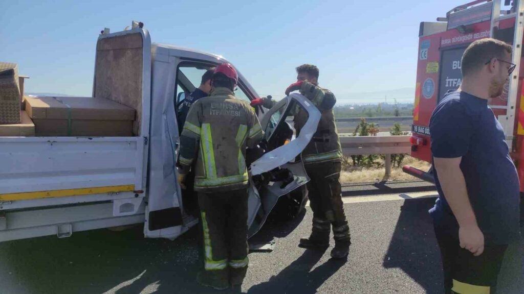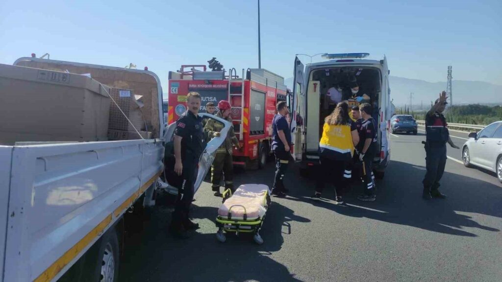 Gebze-Orhangazi-İzmir Otoyolu, Orhangazi Kavşağı yakınlarında bir kamyonet önünde seyir halinde olan otomobile arkadan çarpıp karşı bariyerlere savruldu. Kazada otomobildeki bir çocuk ile kamyonet sürücüsü yaralandı.