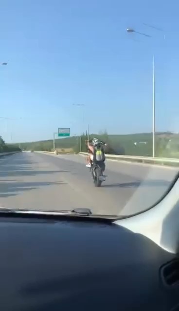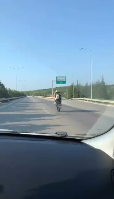 Olay, İstanbul-Bursa-İzmir Otoyolu’nda meydana geldi. Plakası henüz öğrenilemeyen motosiklet sürücüsü bir anda tek teker ilerlemeye başladı. Motosiklet sürücüsünün ölüm ile dans ettiği anlar başka otomobil sürücüleri tarafından kayda alındı.