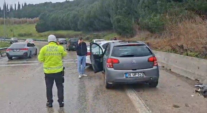 Bursa otobanında meydana gelen zincirleme trafik kazasında 4 otomobil birbirine girdi.