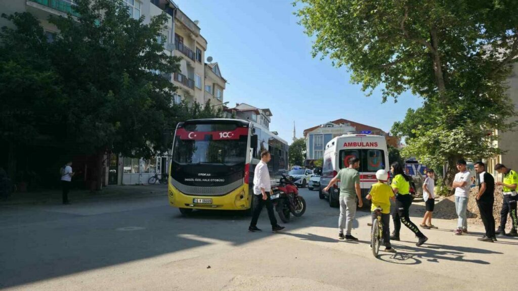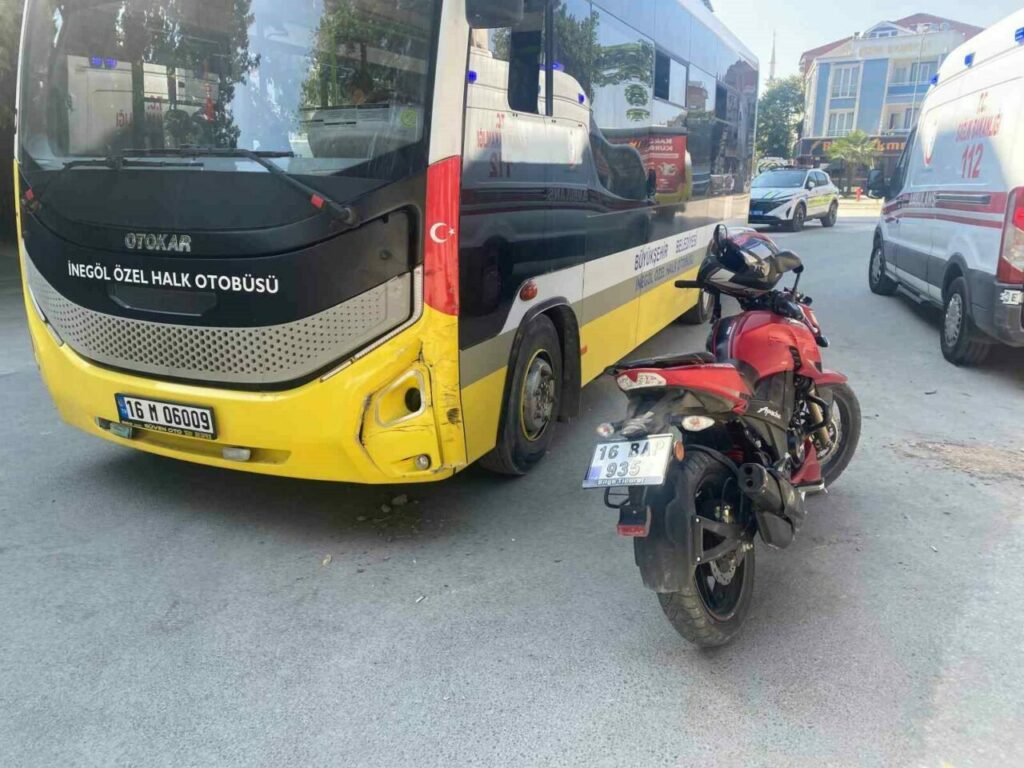 Kaza, saat 17.00 sıralarında Orhaniye Mahallesi Yenişehir Caddesi’nde meydana geldi. Cadde üzerinde seyir halinde olan Ali A. (56) idaresindeki 16 BAP 935 plakalı motosiklet, karşı yönden gelip sokağa dönüş yapmakta olan Hamza T. (26) yönetimindeki 16 M 06009 plakalı özel halk otobüsü ile kafa kafaya çarpıştı. Çarpışmanın etkisiyle devrilen motosikletten düşen sürücü yaralandı. Yaralı kaza yerine sevk edilen ambulansla İnegöl Devlet Hastanesine kaldırıldı. Polis kazayla ilgili tahkikat başlattı.