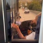 Bursa’da bir halk otobüsü şoförü direksiyon başındayken cep telefonundan video izleyip kazaya davetiye çıkardı. Yürekleri ağza getiren şoförün rahat hareketleri dikkat çekerken, yolcuların uyarılarına rağmen şoför videoyu izlemeye devam etti ve bu durum otobüste gergin anlar yaşanmasına neden oldu. Yolcular, şoförün dikkatsizliği karşısında endişe duyarken, herhangi bir kazaya yol açabilecek bu sorumsuz davranış büyük tepkiyle karşılandı. O anlar ise kameraya anbean yansıdı.