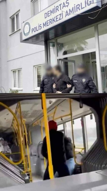 Bursa’da belediye otobüsünde tartıştığı genci tekme tokat darbeden şüpheli, polis ekipleri tarafından gözaltına alındı.