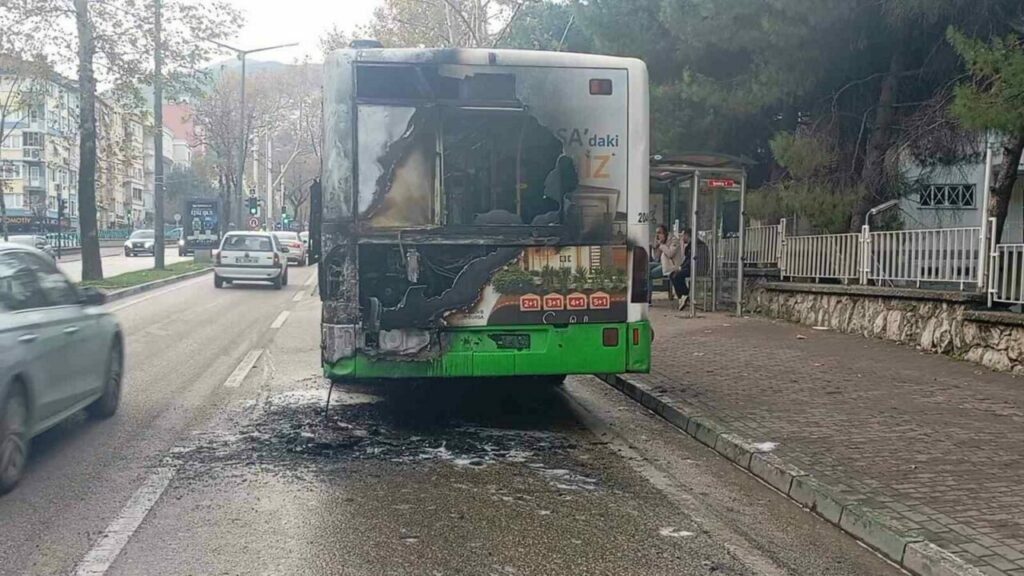 Bursa’da şehir içi yolcu otobüsünün motor kısmında başlayan yangın, yolcular arasında büyük paniğe sebep oldu.