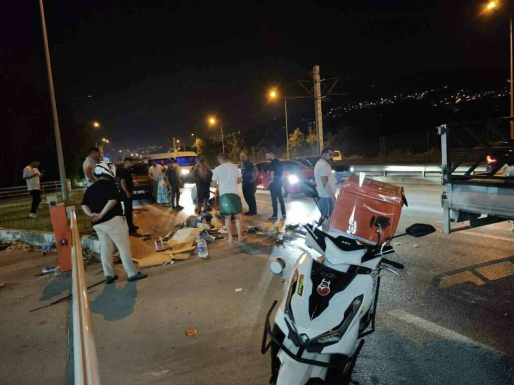 Bursa’da kontrolden çıkan otomobil, elektrikli motosiklete çarptı. Kazada 3 kişi yaralandı.