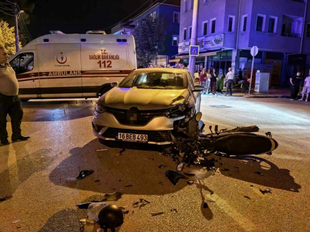 Kaza, saat 22.00 sıralarında Kemalpaşa Mahallesi Mahmutesatbey Caddesi üzerinde meydana geldi. Cadde üzerinde seyir halinde olan Kadir K. (27) yönetimindeki 16 KJM 45 plakalı motosiklet, Emin Sokak’tan caddeye çıkan Nilüfer Ş. (41) yönetimindeki 16 BEB 493 plakalı otomobil ile çarpıştı. Şiddetli çarpmanın etkisiyle devrilen motosikletten düşen sürücü ağır yaralandı. Yaralı kaza yerine sevk edilen ambulansla İnegöl Devlet Hastanesi’ne kaldırıldı. Yaralının sağlık durumunun ciddiyetini koruduğu öğrenildi.