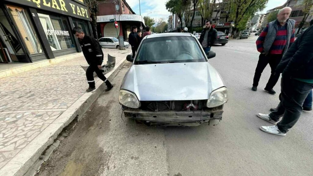 Bursa’nın İnegöl ilçesinde otomobil ile çarpışan motosikletteki 2 kişi yaralandı. Kaza anı güvenlik kamerasına yansıdı.