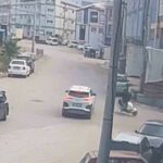 Bursa’nın İnegöl ilçesinde otomobil ile çarpışan motosikletin sürücüsü yaralandı. Kaza anı bir iş yerinin güvenlik kamerasına saniye saniye yansıdı.