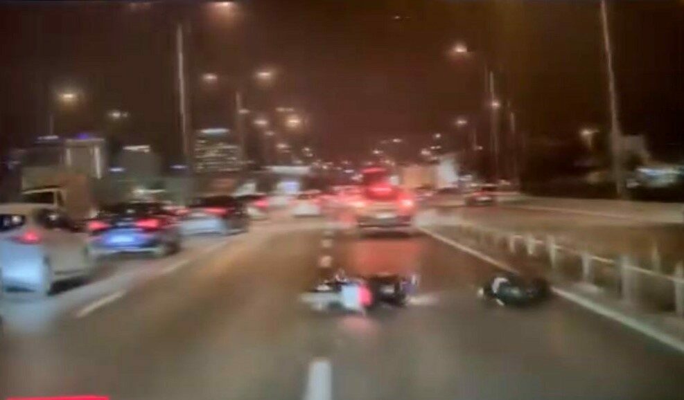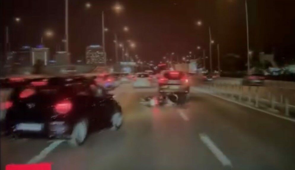 Bursa’da şerit değiştiren otomobil, seyir halindeki motosikletliye çarptı. Çarpmanın etkisiyle yere düşen motosiklet sürücüsü hafif şekilde yaralanırken, kaza anı kameraya yansıdı.