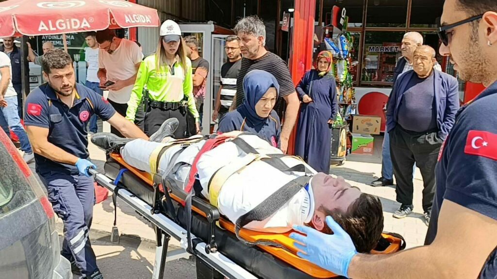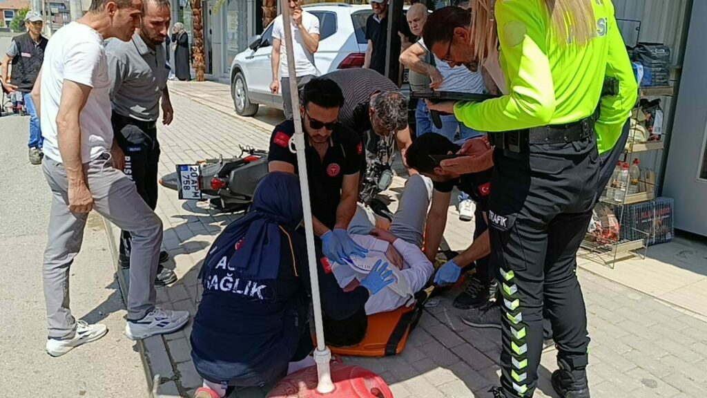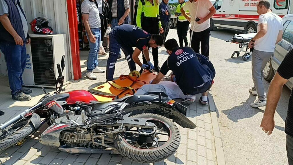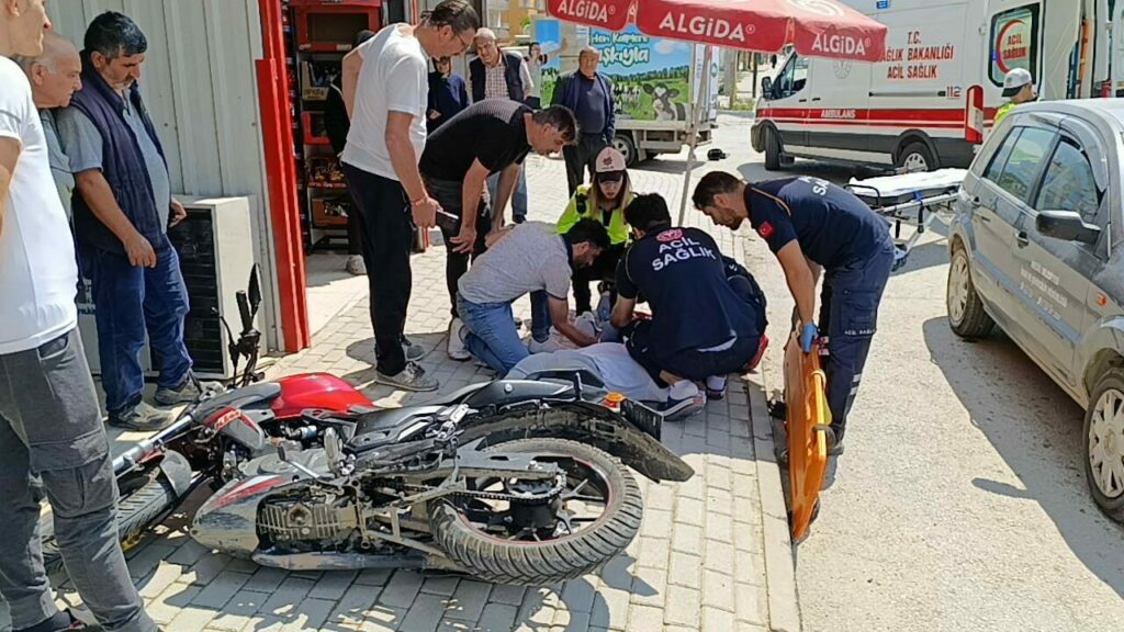 Kaza saat 11.00 sıralarında Mesudiye Mahallesi İnegöl Caddesi üzerinde meydana geldi. Cadde üzerinde seyir halinde olan Sürücü Mehmet Efe A.(17) yönetimindeki 20 APM 758 plakalı motosiklet, aynı yöne giderken yol kenarına park etmek için manevra yapan sürücü Adem G.(50) yönetimindeki 16 PC 855 plakalı otomobil ile çarpıştı. Çarpışmanın etkisiyle devrilen motosikletten düşen sürücü yaralandı. Yardıma koşan vatandaşlar, yaralıyı güneşten korumak için bakkalın şemsiyesini kullandılar. Yaralı kaza yerine sevk edilen Ambulansla İnegöl Devlet Hastanesine kaldırıldı. Kaza anı bir işyerinin güvenlik kamerasına saniye saniye yansıdı.