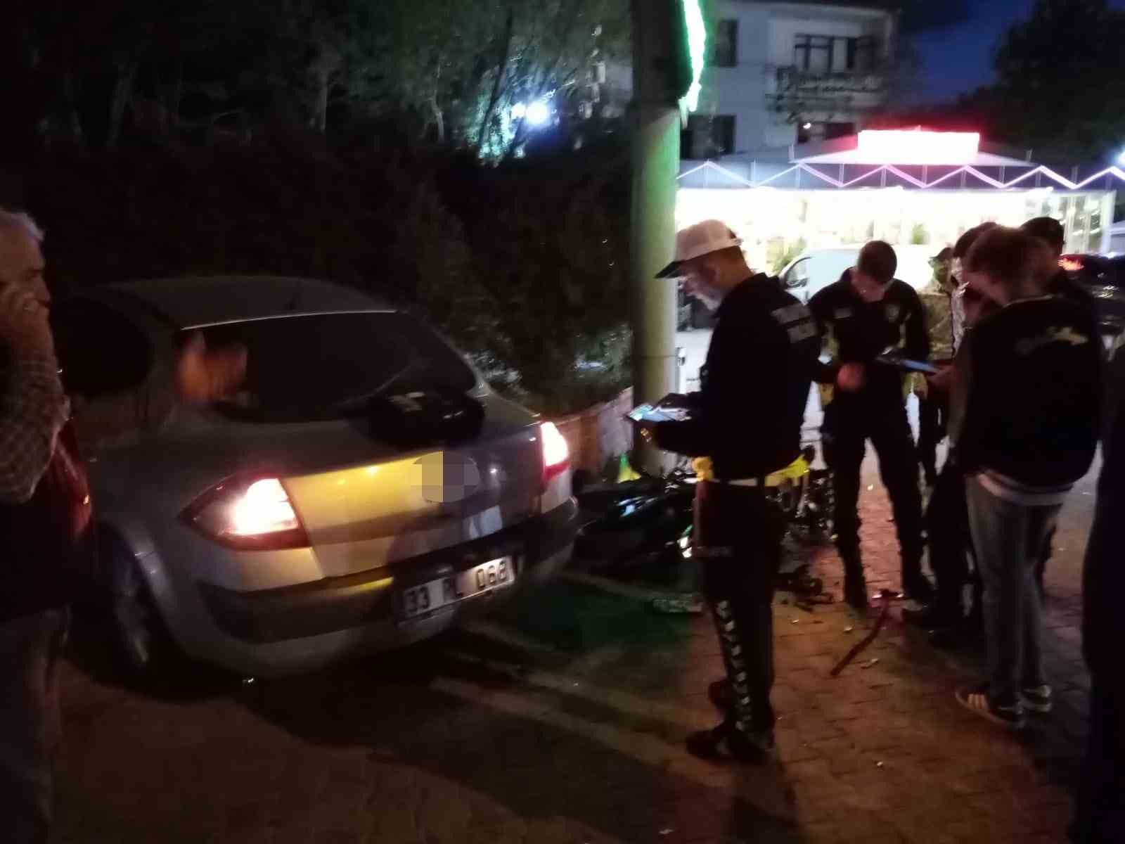 Edinilen bilgiye göre, Bursa-Ankara karayolu üzeri Kalburt mevkiinde Bursa’dan İnegöl’e seyir halinde olan Cihan Ş. yönetimindeki 33 RL 068 plakalı otomobil, yol kenarındaki köfteciye girmek için manevra yaptığı sırada arkasından seyir halinde sürücü Alihan Aslan (19) yönetimindeki 16 BGT 394 plakalı motosiklet ile çarpıştı.