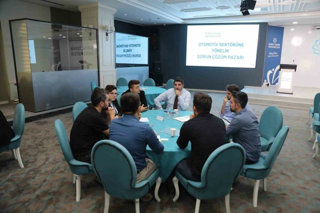 Sorun Çözüm Pazarı buluşmaları kapsamında BTÜ’lü akademisyenler ile otomotiv firmalarının temsilcileri “sorun çözüm masalarında” bir araya geldi. Firmalar Ar-Ge, Ür-Ge, tasarım, üretim, inovasyon, test-analiz, kalite gibi noktalarda karşılaştıkları sorunları aktarırken, alanında uzman akademisyenler ise bu problemlere çözüm önerileri getirdi.