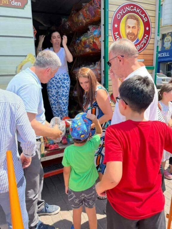 Adnan Menderes Meydanı’nda düzenlenen organizasyonda, çocuklara salçalı ekmek ve ayran ikram edildi, ardından yüzlerce çocuğa oyuncaklar dağıtıldı. Etkinlik, Mustafakemalpaşa Kent Platformu üyeleri ile Vatan Sevdalıları Platformu’nun ortaklaşa çalışmasıyla gerçekleşti. 2 bin adet salçalı ekmek, 5 bin ayran ve bin oyuncak, çocuklara ulaştırıldı. Renkli görüntülere sahne olan programa çok sayıda vatandaş da ilgi gösterdi.