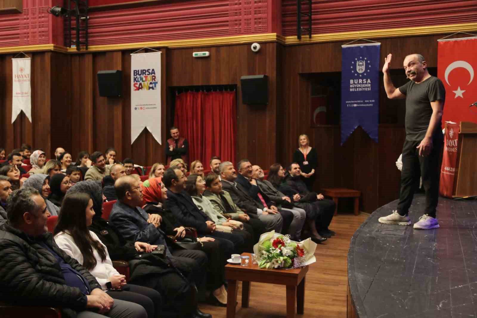 Oyun sonrasında Hayat Hastanesi Yönetim Kurulu Başkan Yardımcısı ve Genel Koordinatör Betül Kabalar, sahnelediği gösteri ile programa katkı sağlayan ünlü tiyatro oyuncusu Ayhan Taş’a çiçek takdim etti.