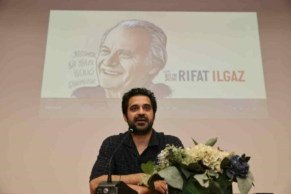 Türk edebiyatının önemli isimlerinden olan Rıfat Ilgaz’ı anlatan kısa filmin ardından oyuncu ve yönetmen Uğur Uzunel, işçilerle söyleşi gerçekleştirdi. Konuşmasında Rıfat Ilgaz’ın öğretmen ve edebiyatçı kimliğinden bahseden Uzunel, “Onu tanımama, okumama sebep olan yayınlardan birisi ‘Markopaşa’ isimli mizah dergisidir. Döneminde haftalık yayın yapıyordu. Başyazarı Sabahattin Ali ile Aziz Nesin ve Rıfat Ilgaz da burada yer alıyordu. Derginin içeriği zengindi. Okuduğumda epey güldürüyordu” dedi.
