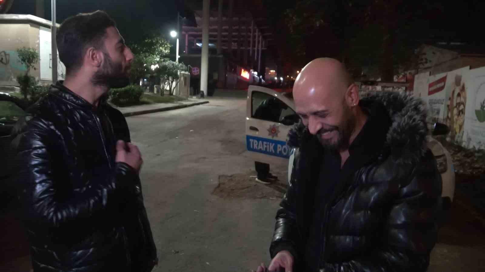 Merkez Osmangazi ilçesinde uygulama noktası kuran trafik polislerini gören sürücü, yanında bulunan müzisyen arkadaşıyla kaçmak isterken başka bir uygulama noktasına takıldı. Alkol testi yapan ekipler direksiyon başındaki Caner Ç.’nin 1.35 promil alkollü olduğunu gördü. Bunun üzerine aracı bağlanan sürücünün müzisyen arkadaşları yedikleri ceza üzerine ‘insanlık hali’ deyip konser verdi. Polisleri sesiyle tebessüm ettiren kişinin o renkli anları kameraya yansıdı.