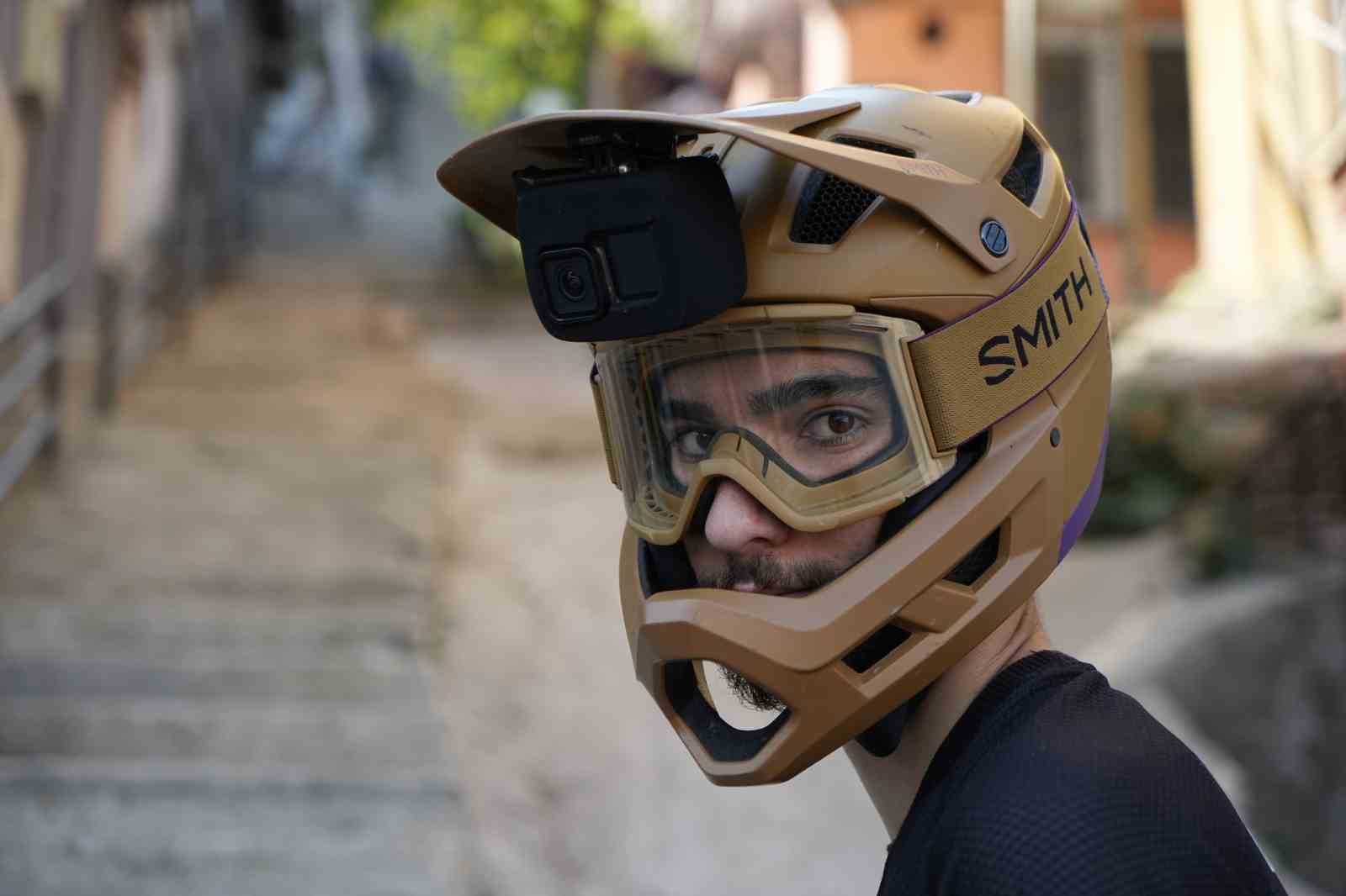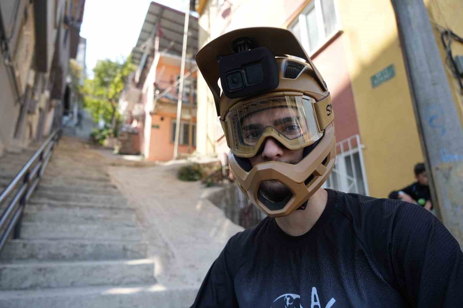 Bursa’nın en dik ve en uzun merdiveninde yaklaşık 225 basamağı bisikletiyle 10 saniyede inen Emir Melik Peker, “Dünya’da downhill sporu olarak geçiyor, Türkçeye çevirdiğimiz zaman dağ bisikleti ile tepeden iniş anlamına geliyor. Normal şartlarda bu sporun orijinalinde dağlardan iniyoruz. Patikalar, rampalar topraktan her şey olabiliyor. Şehir içi parkurlar işin görsel kısmı. Ayrı bir zevki var, sosyal medya kısmında bize yardımcı olabiliyor. 2019 yılından bu güne tepeden iniş yapıyorum. Daha öncesinde başka kategorilerde yarışmıştım. 2019 yılından itibaren katıldığım yarışlarda 2 Türkiye şampiyonluğu kazandım. Birçok özel yarışta derecem var. Ayrıca yurtdışında genel kategoride 1. olan ilk sporcuyum. Bu spora girdiğimiz zaman sponsor ihtiyacı duyuyoruz. Bunun da en büyük kaynağı sosyal medya oluyor. O nedenle sosyal medyaya içerik üretiyoruz. Genellikle şehir içi parkurlar görsel açıdan heyecanlı olduğu için insanların ilgisini çekiyor. Dağda sürdüğümüz zaman insanlar bunu anlamıyor ama merdivenlere geldiğimiz zaman işin ciddiyetini ortaya çıkartıyor. Burası Bursa’nın en dik ve uzun merdiveni, yaklaşık 225 basamak. Frenler bir aşamada artık işlevini kaybediyor. Çıkması 10 dakika, inmesi 10 saniye” şeklinde konuştu.