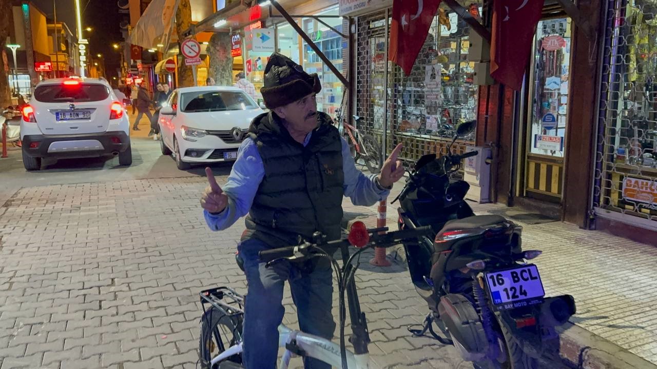 Bursa’nın İznik ilçesinde Bağımsız Belediye Başkan adayı Harun Doğru, başında Osmanlı Alplarının taktığı börkü, altında da ’makam aracım’ dediği bisikletiyle kahve kahve gezip oy istiyor.