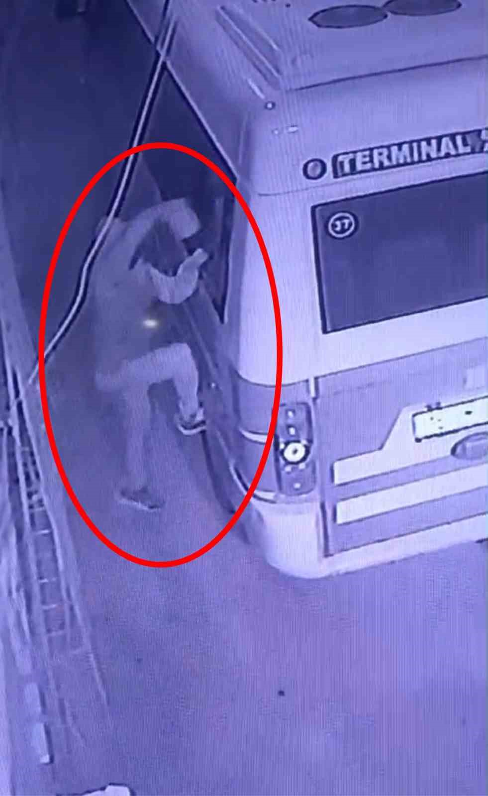 Kimliği belirsiz hırsızın minibüsün arka camından içeriye girdiği ve kumbaraları alarak sırra kadem bastığı görüldü.