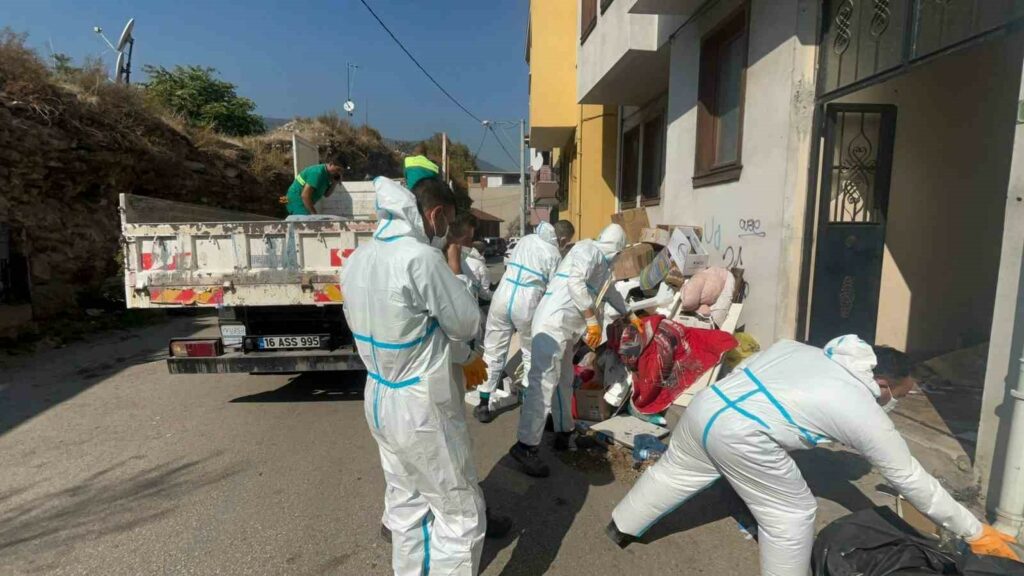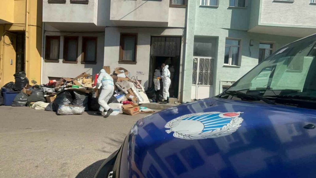 Bursa’da çevreye yaydığı kötü koku sebebiyle mahalleliyi canından bezdiren evden 5 kamyon çöp çıktı.