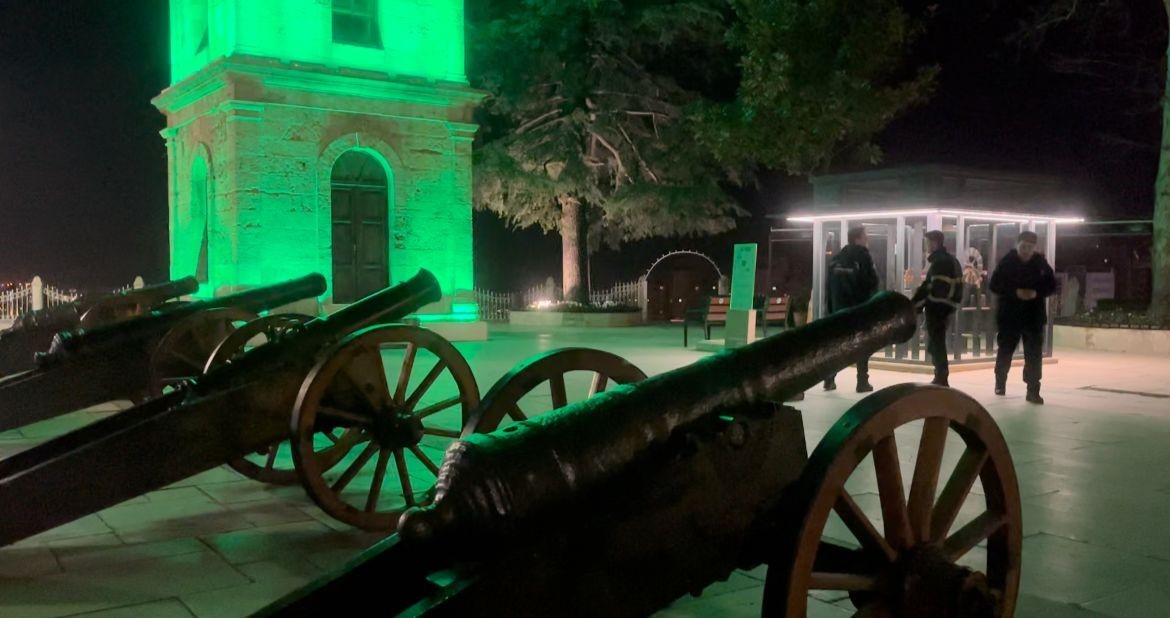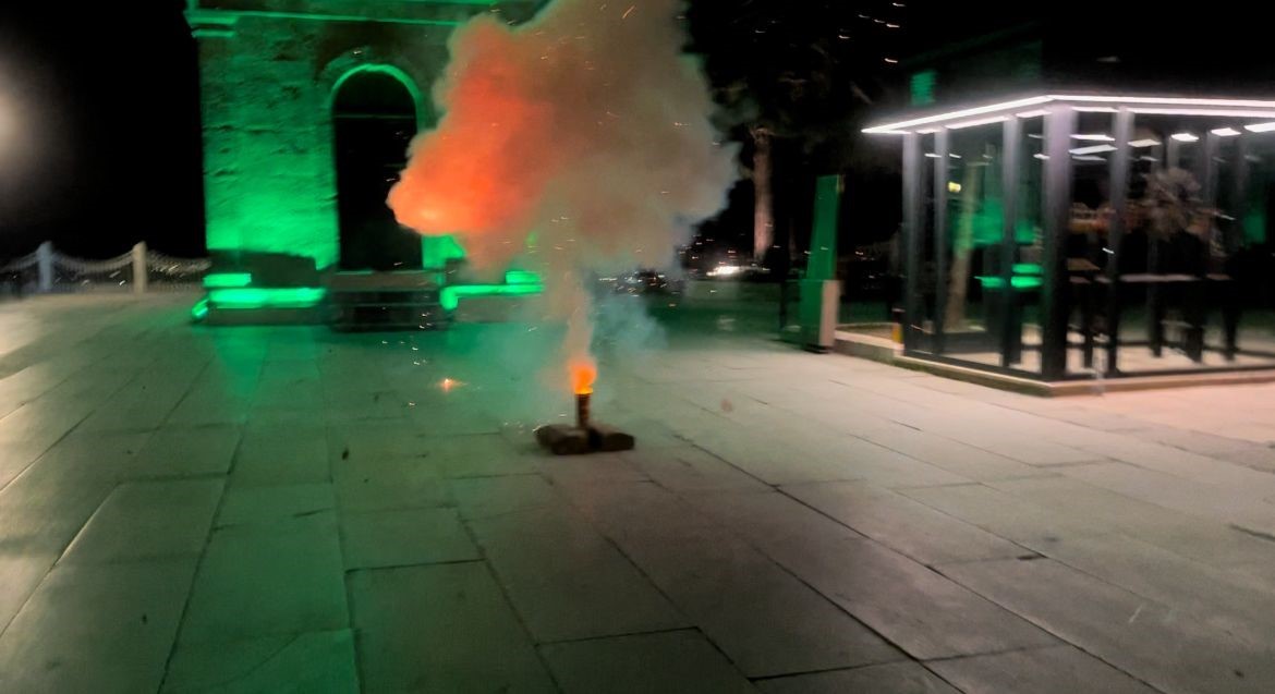 Büyükşehir Belediyesi İtfaiye Daire Başkanlığı’ndan görevli itfaiyeciler iftar ve sahur saatlerinde Tophane’den ses bombasını patlatıyor ardından ezanlar okunuyor.
