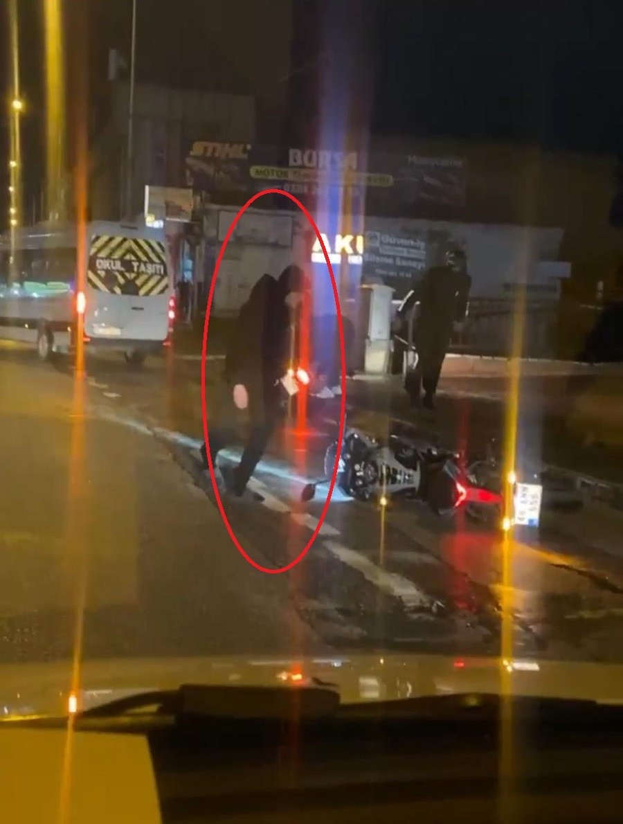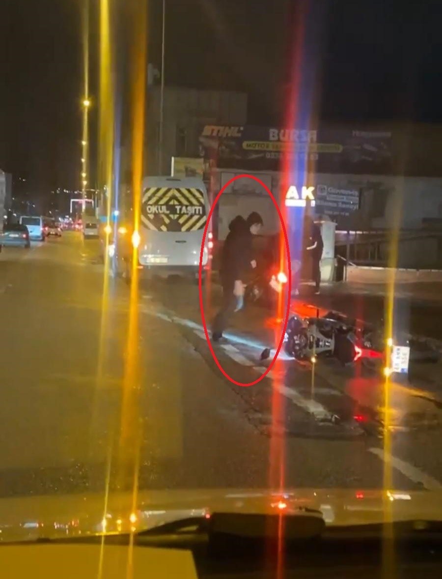 Merkez Yıldırım ilçesi Ankara Caddesi üzerinde bir motosikletli fırtınada kontrolü kaybedip aracıyla yere düştü. Onu gören diğer motosiklet sürücüsü ve arkadaşı yardıma koşmak istese de ayakta durmakta güçlük çektiler.