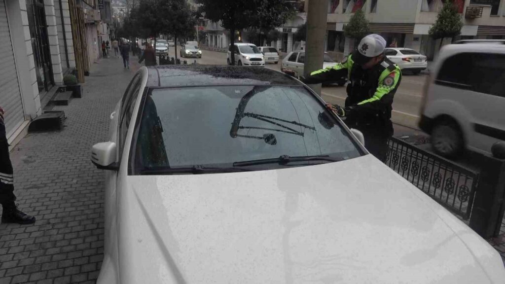 Araç içerisinde sızan A.D., karşısında ekipleri görünce araçtan indi. Ekipler, A.D.’ye aracını kaldırıma park ettiği için cezai işlem uyguladı. A.D., ehliyetli bir arkadaşını çağırarak, aracı bulunduğu yerden kaldırdı.