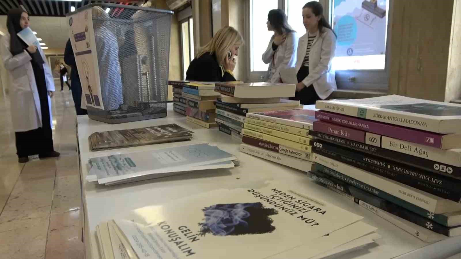 Uludağ Üniversitesi’nde Dünya Sigara Bıraktırma gününde sigara paketini getirenlere kitap hediye edildi. Sigara bağımlıları bir gün sigara içmeme sözü vermelerinin ardından paketlerini bırakarak beğendiği kitabı aldı.