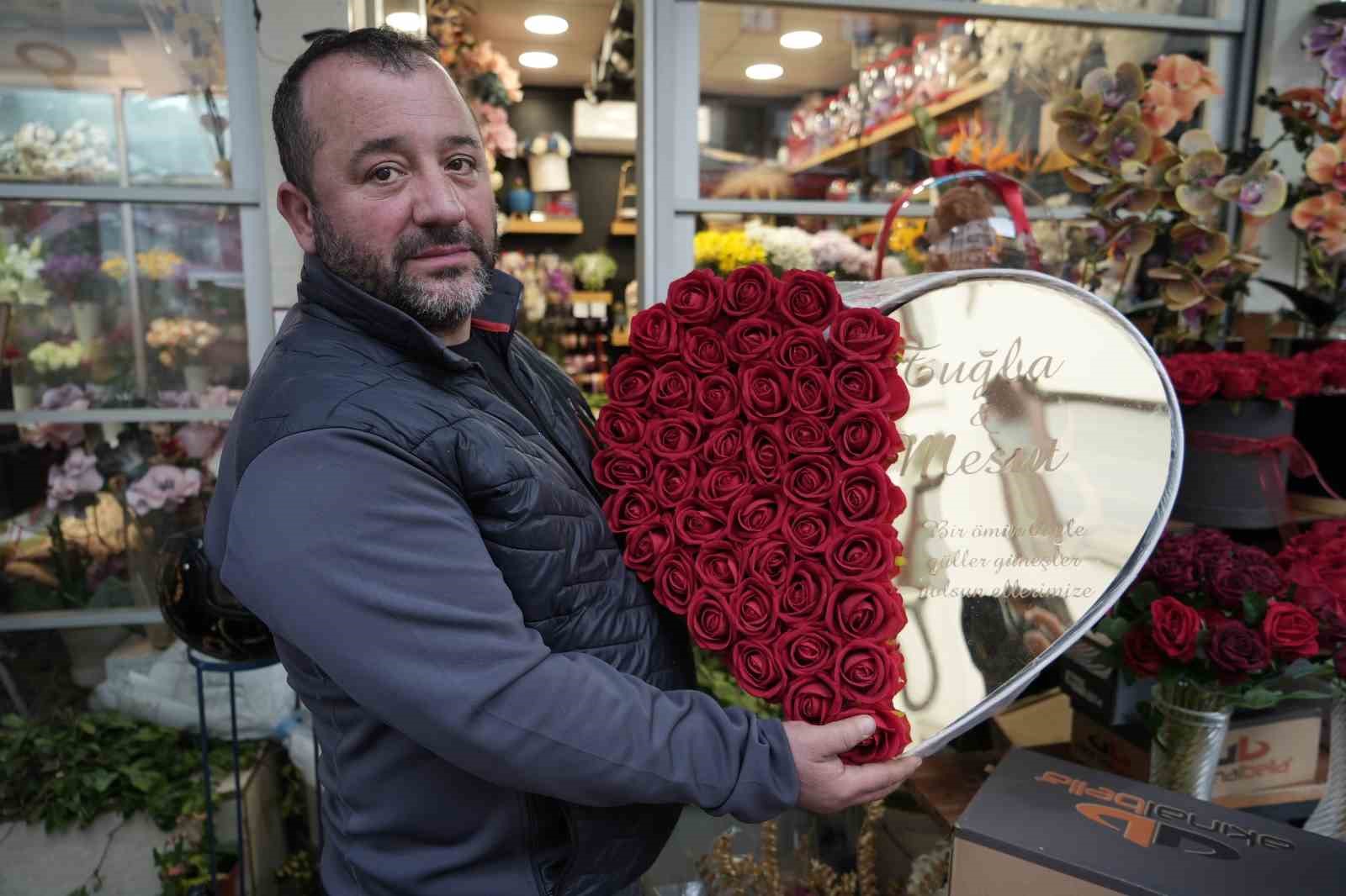 30 yıldır çiçekçilik yapan Mesut Tok, “Sevgililer Günü’nde genelde gül gidiyor. Herkes bir anda talep edince işlerimiz yoğun oluyor. Yaklaşık bir hafta önceden biz hazırlığımızı yapıyoruz. Çikolata da tercih ediliyor, çikolatalarımız var. İsimli ve isimsiz çikolatalara bazıları sevdiklerinin isimlerini de yazdırıyor. Çikolatalı buketlerde yapıyoruz” dedi.