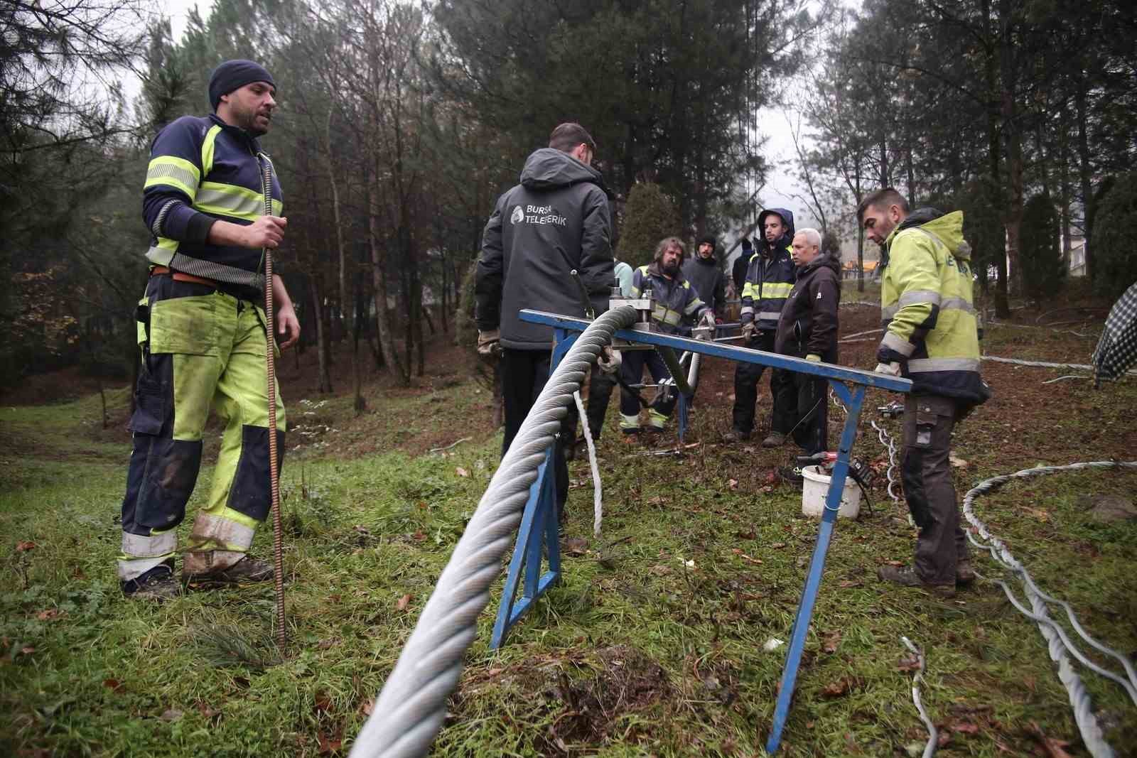 “Bursa bir hattı dediğimiz Teferrüç istasyonundan başlayıp Kadıyayla İstasyonu’na kadar olan hatta yenileme yaptıklarını anlatan Karakoç, “Sipariş ettiğimiz halat uzunluğu 4 bin 800 metre ama şuan 4 bin 500 metrelik uzunluk bize yetiyor. Arkadaşlarla birlikte örüm dedikleri olayı gerçekleştiriyoruz. Bugün tamamıyla bitmiş durumda. Son bindirmeyi yaptıktan sonra halatımızı eski hâline getirip, gerekli kontrolleri yaptıktan sonra hafta sonu hizmete açacağız” dedi.
